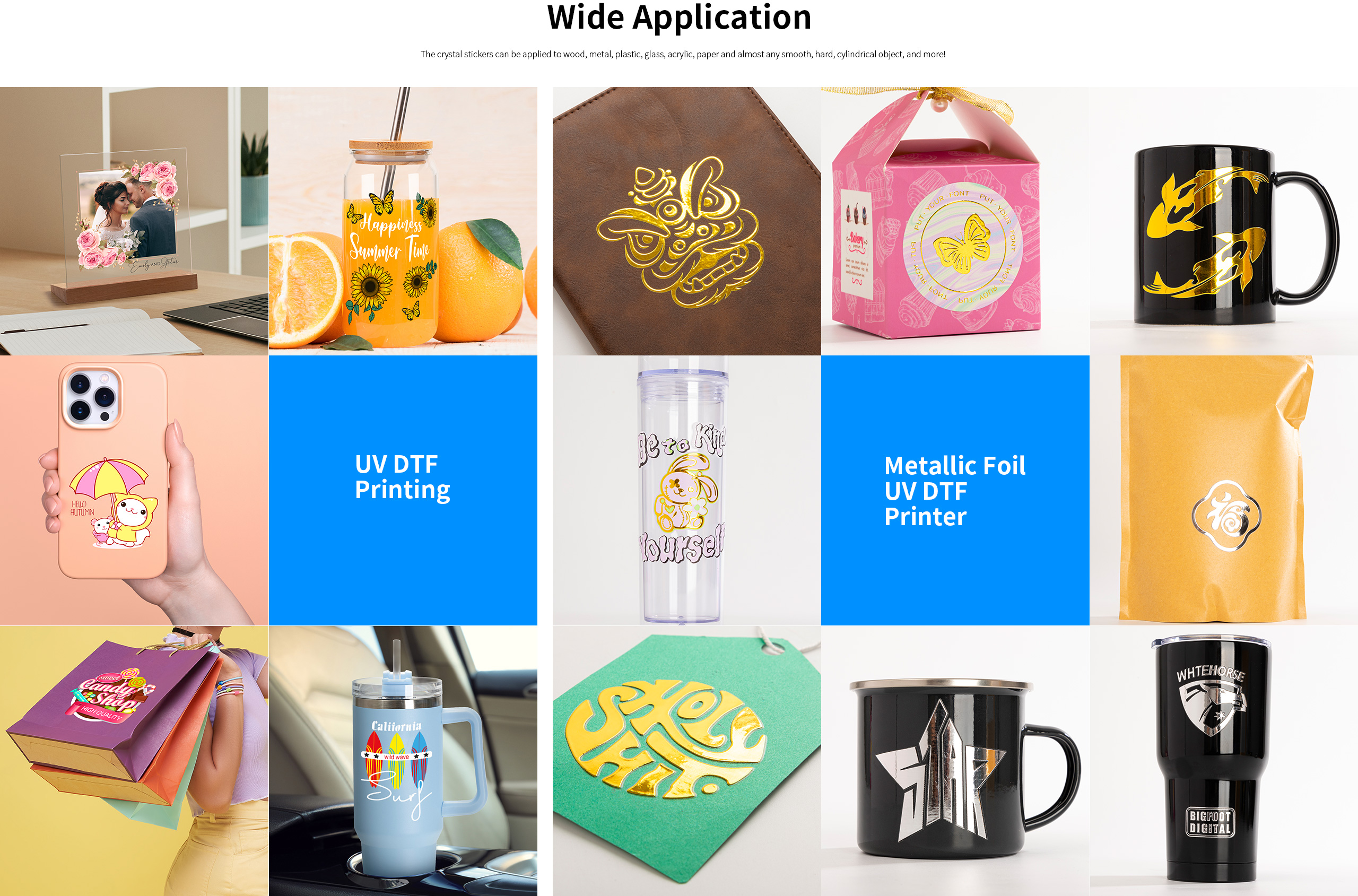 The crystal stickers can be applied to wood, metal, plastic, glass, acrylic, paper and almost any smooth, hard, cylindrical object, and more!